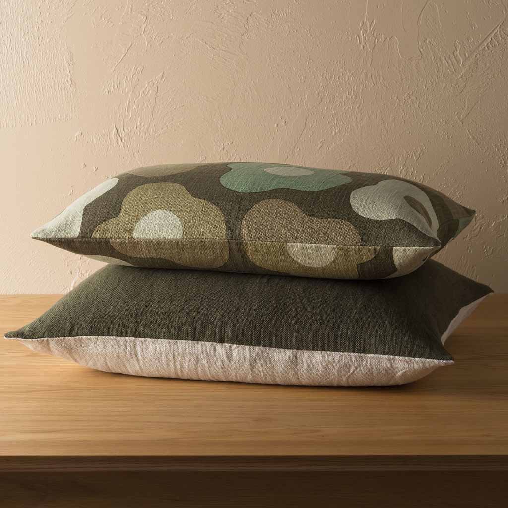 The oversized Amano Cushion Cover is a delightfully reversable two-toned piece that celebrates warming tones and abundant texture.