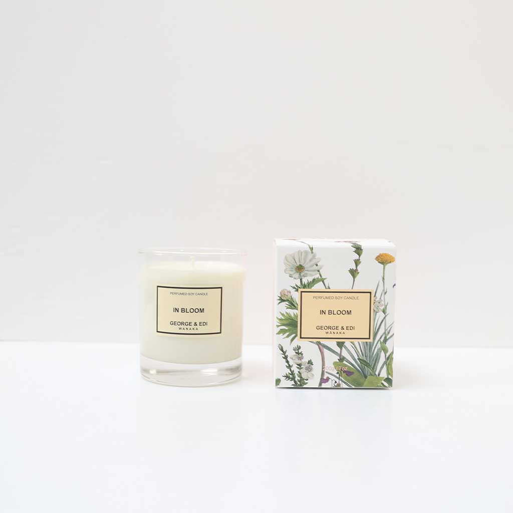 EACH GEORGE & EDI CANDLE IS POURED BY HAND AND MADE IN OUR ATELIER IN WANAKA AND CRAFTED FROM NATURAL SOY WAX WITH COTTON BRAIDED WICKS. THE CANDLES ARE PACKAGED IN ONE OF OUR SIGNATURE UNFOLDING BOXES
