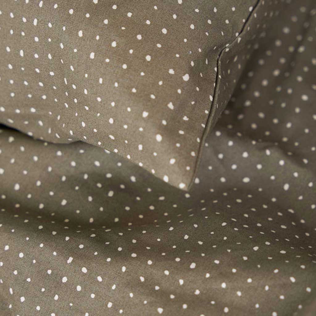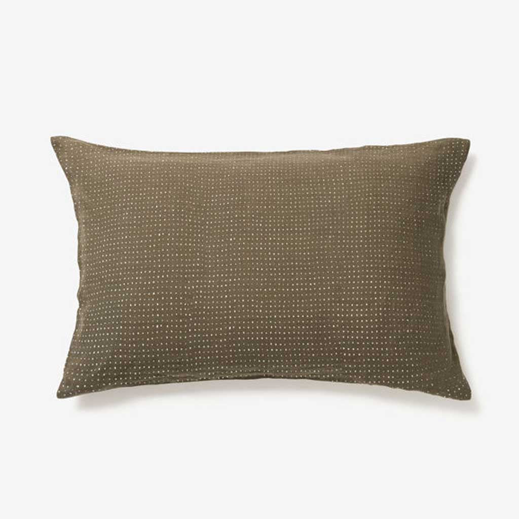 Features a minimal dot pattern, reimagined through hand-painting to give a relaxed, informal finish. Made with a blend of linen and organic cotton in a classic olive colourway.